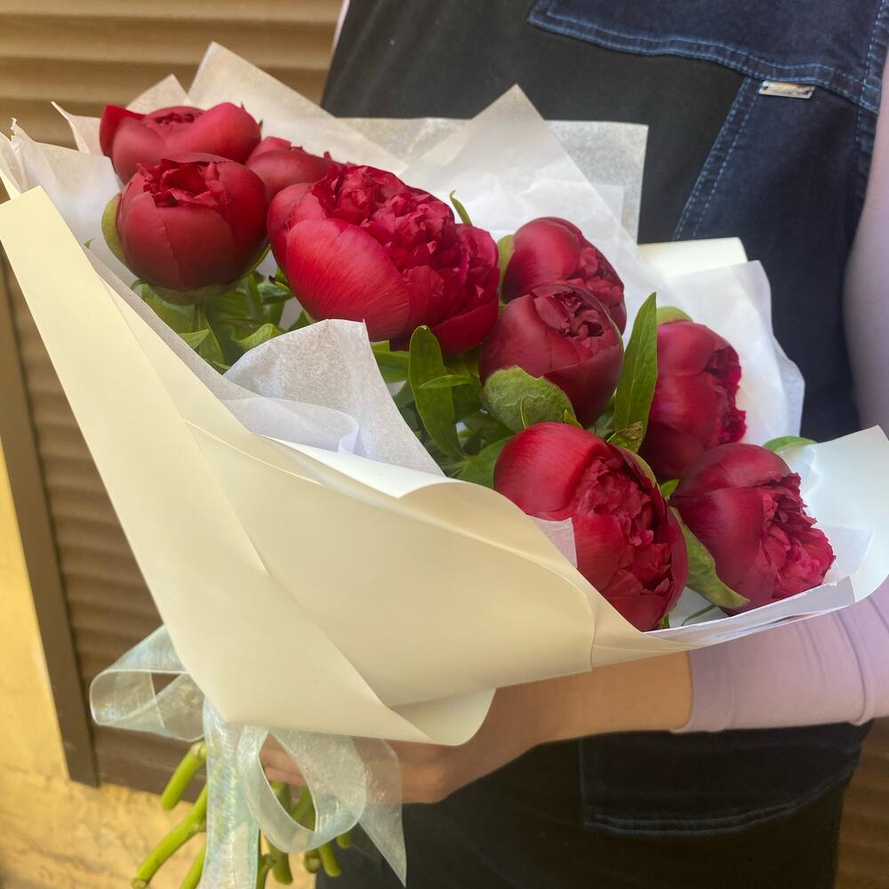 Букет из насыщенных красных пионов внесёт в вашу жизнь ярких красок, которых сейчас не хватает