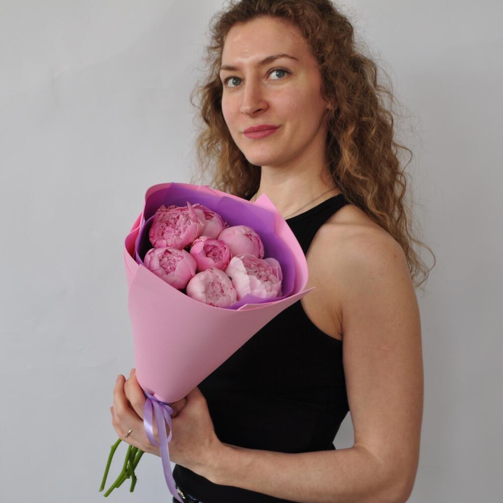 Её любимые цветы!Ароматные розовые пионы сорта Сара Бернар Бутоны в самом начале своего роспуска – будут радовать получателя долгое время)Радуйте своих любимых!