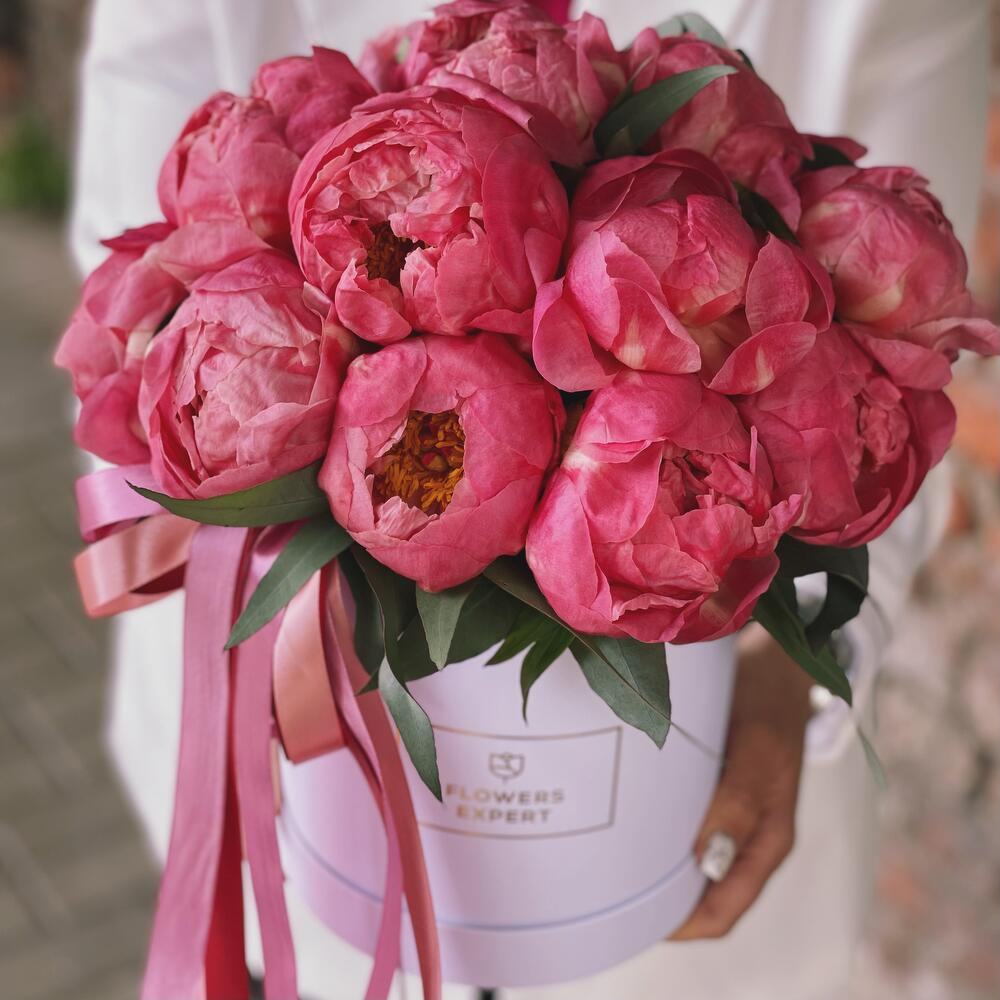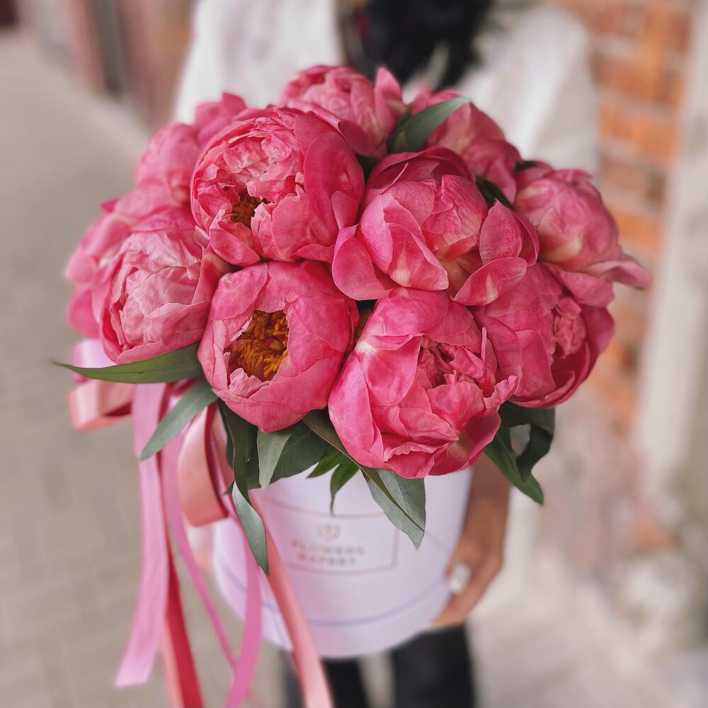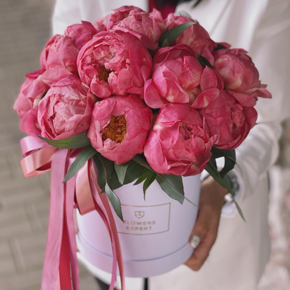 Огромная корзина с пионами и орхидеей