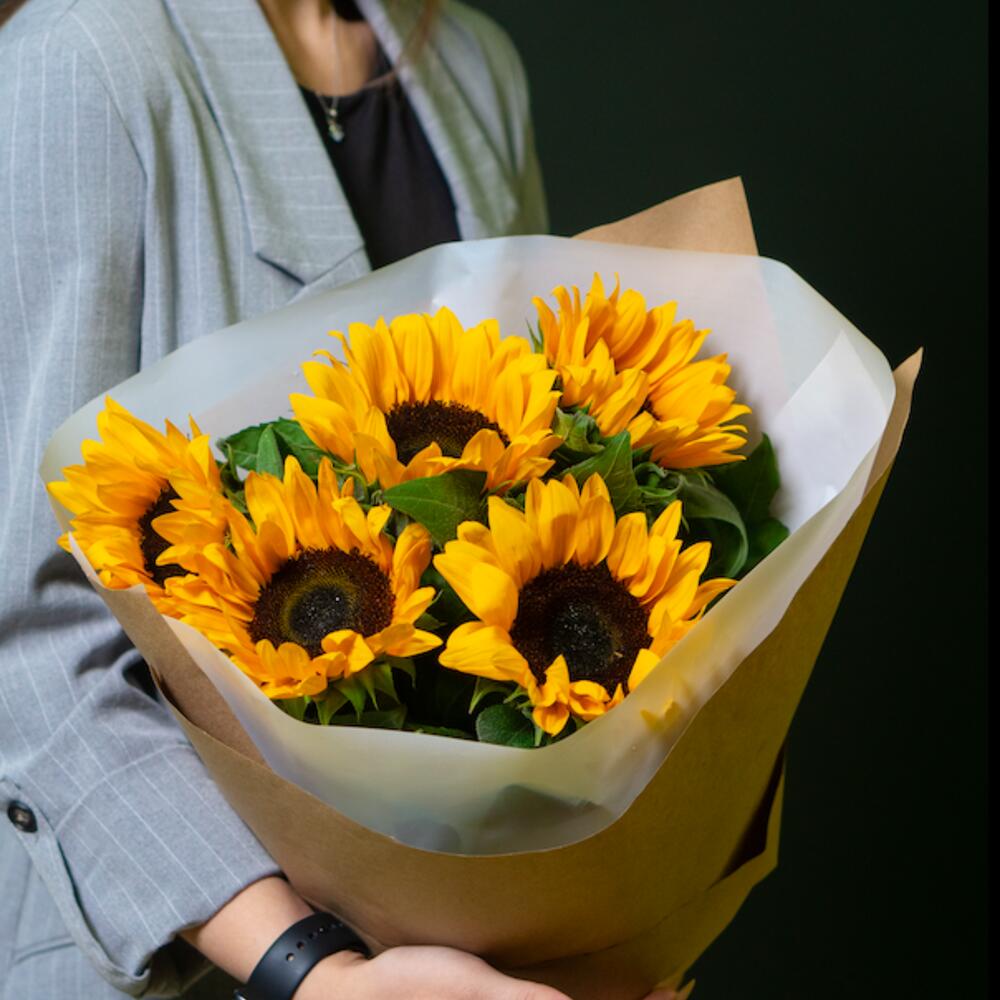 БУКЕТ ИЗ ПОДСОЛНУХОВ НА КРАФТЕ 5 шт