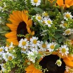 Букет с подсолнухами, ромашками и солидаго «Летнее танго»