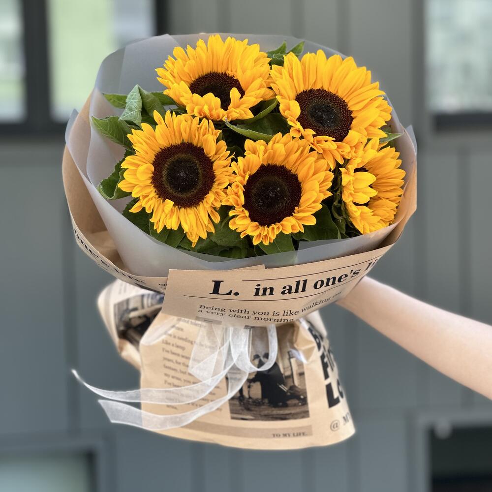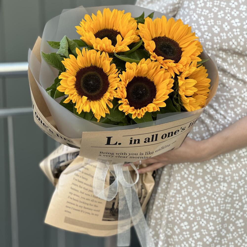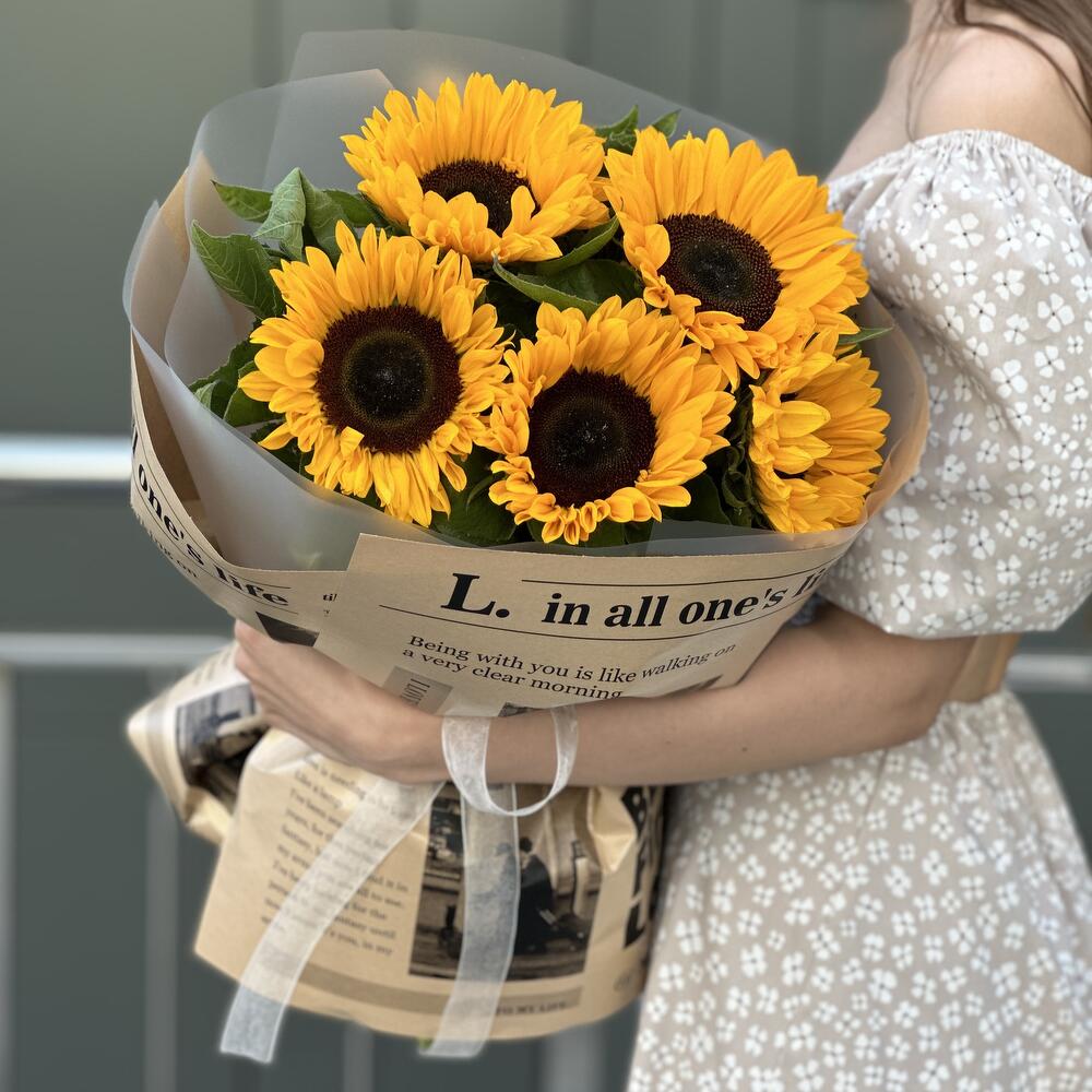 Букет Солнце из 5 подсолнухов