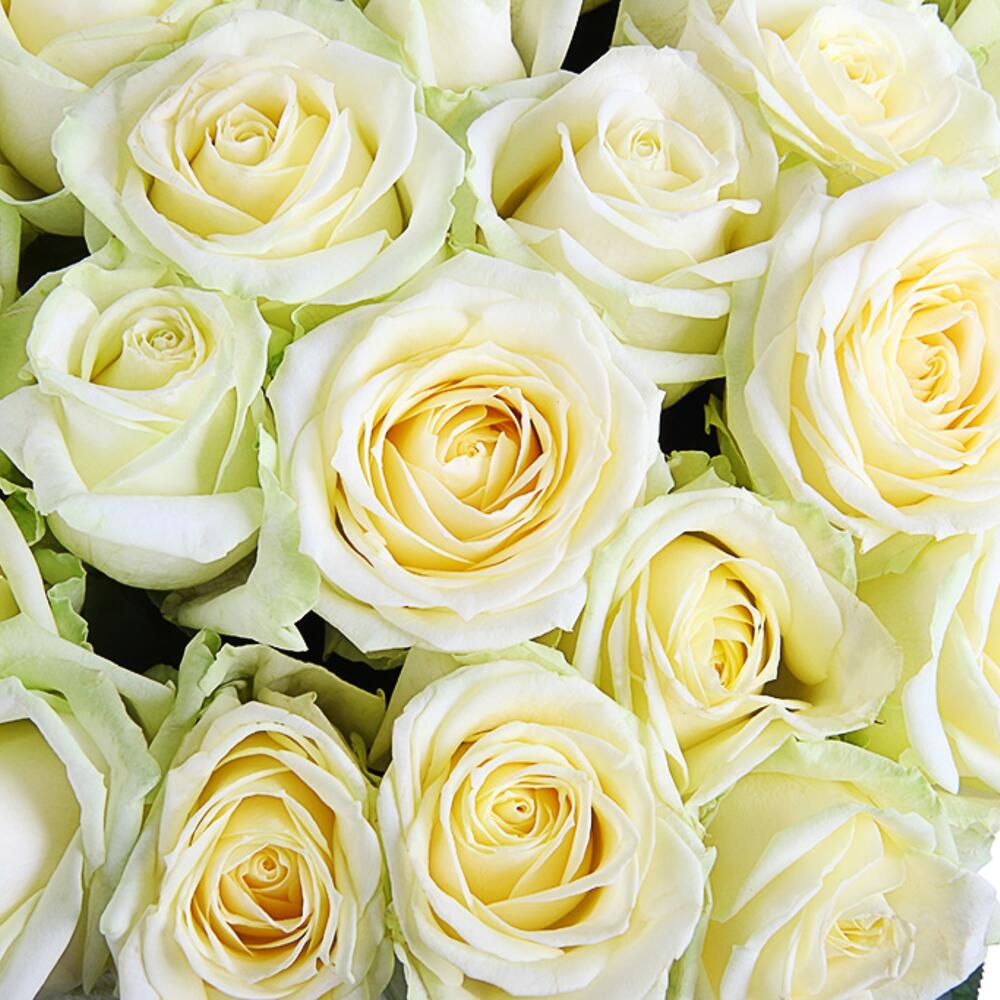 розы белые – 101 шт.Лента – 1 шт.