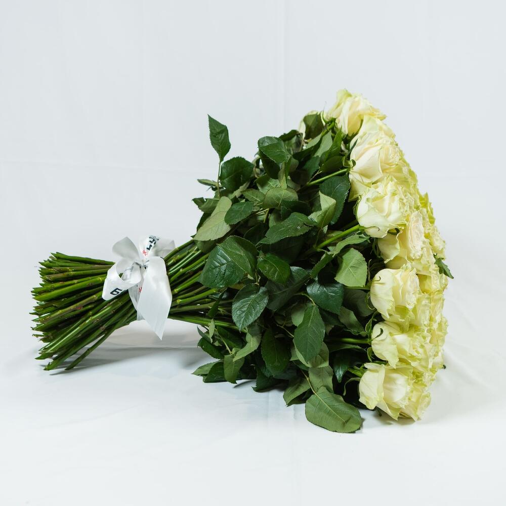 Роза мондиаль 60 см – 101 шт.Лента атласная – 1 шт.Пленка прозрачная – 1 шт.