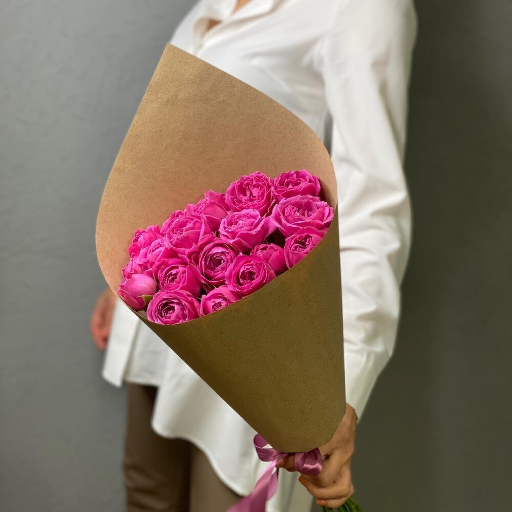 7 пионовидных роз в крафт упаковке