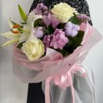 Авторский букет с пионом, лилией и розой