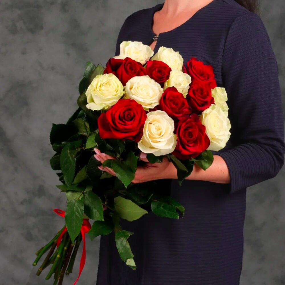 Букет 15 красных и белых роз