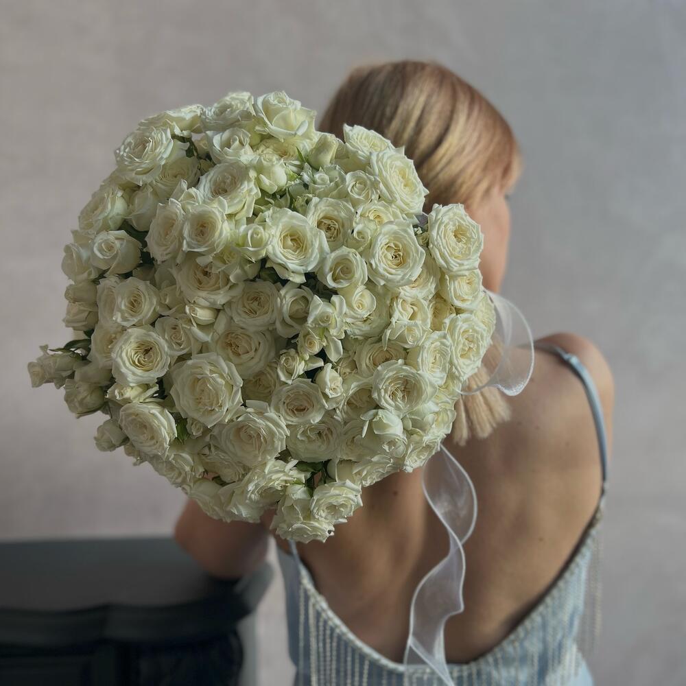 Атласная лента – 1 шт.Кустовая пионовидная роза – 25 шт.