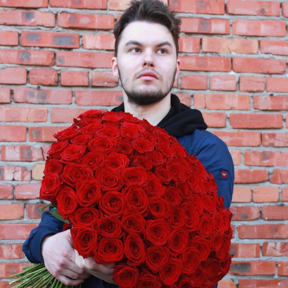 Лента атласная – 1 шт.Роза красная 60 см – 101 шт.