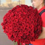 Роза Эквадор Премиум – 101 шт.Лента атласная – 5 шт.
