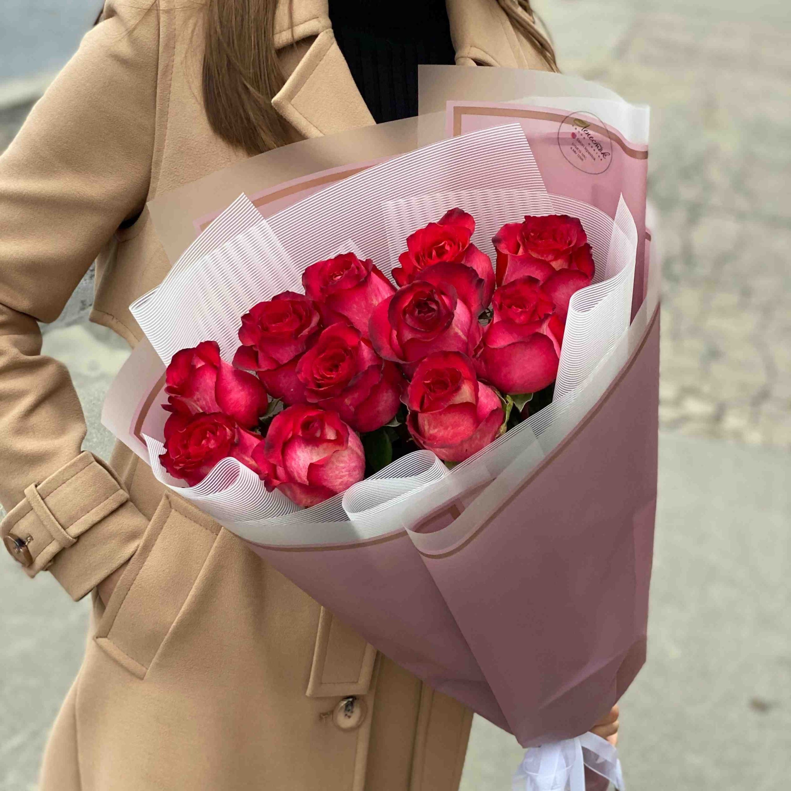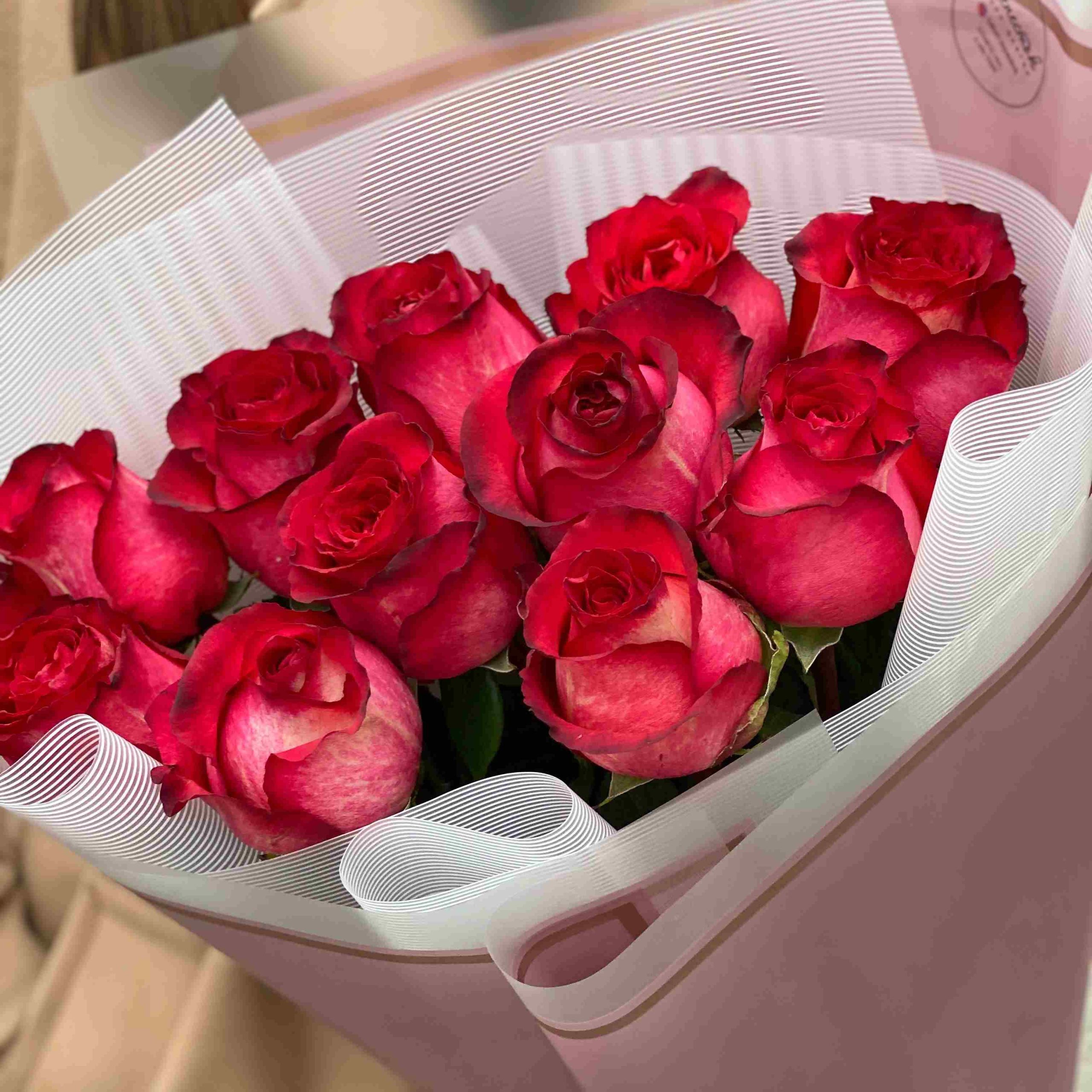11 красных роз с оформлением Киев