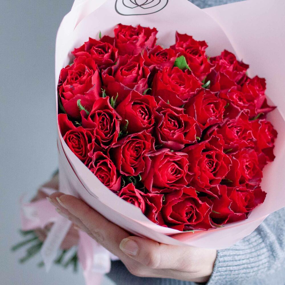 Букет из 25 красных роз (Кения) 30 см