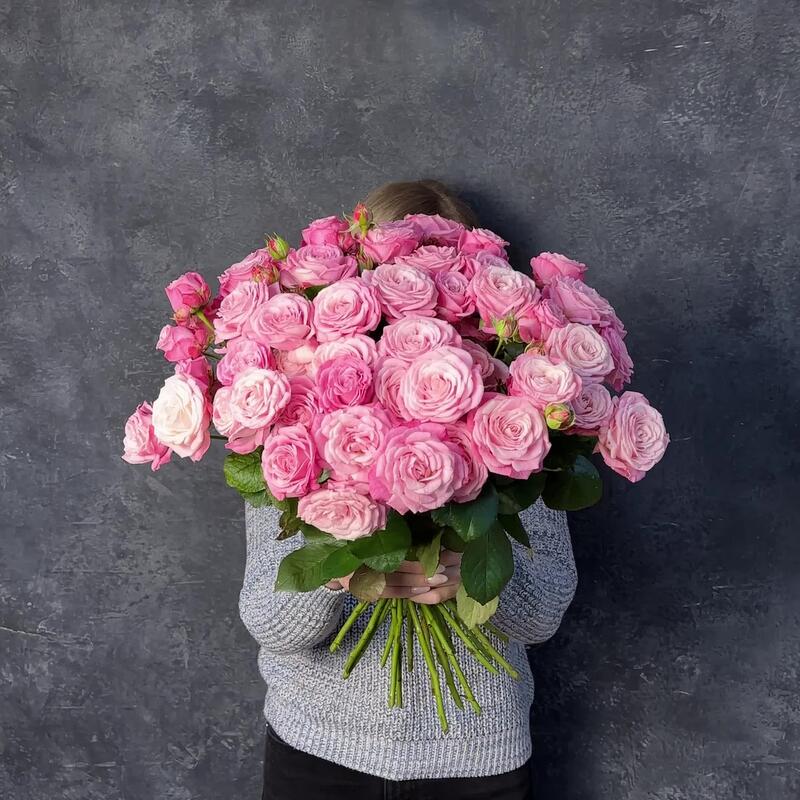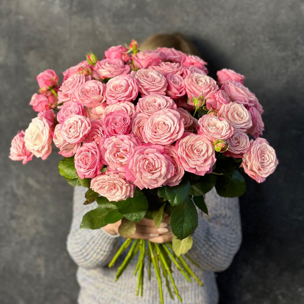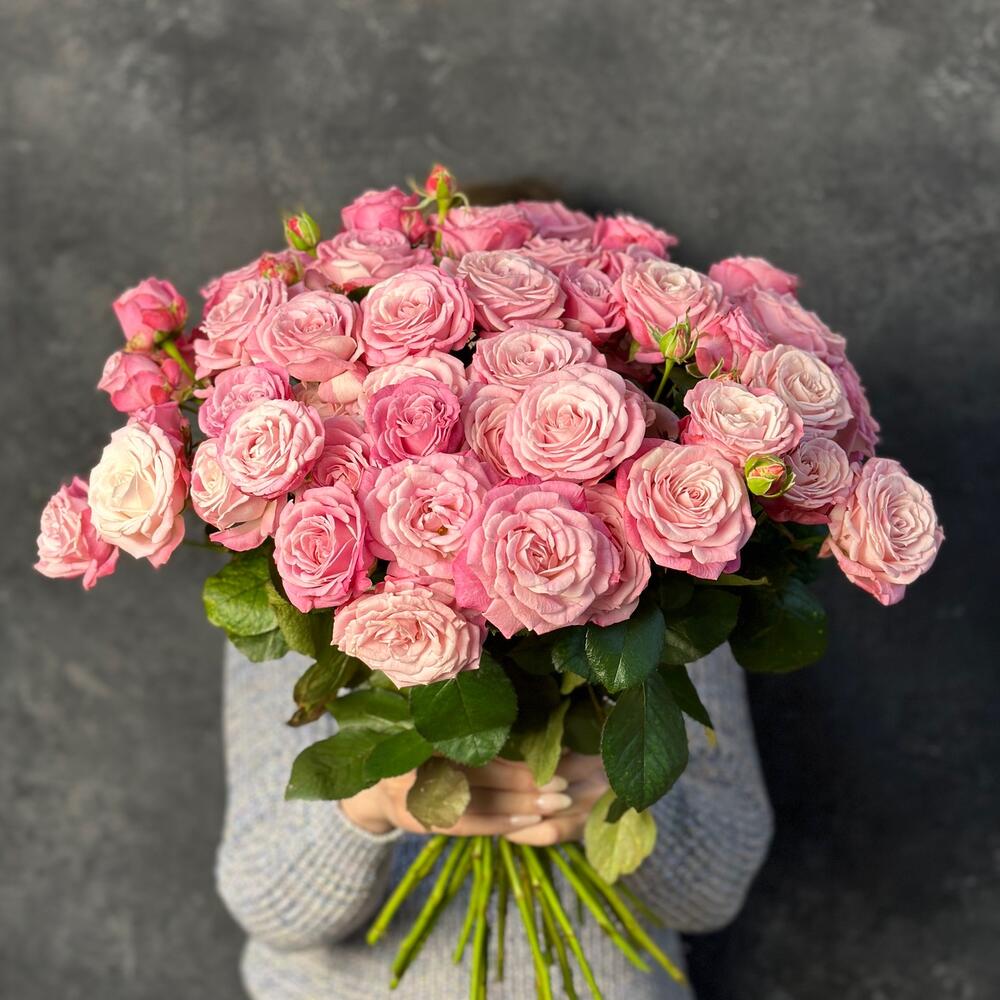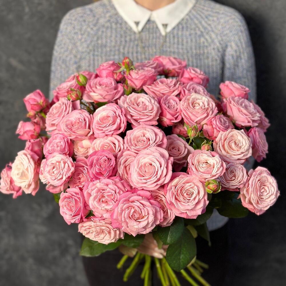 Лента атласная – 1 шт.роза кустовая пионовидная леди бомбастик – 25 шт.утеплитель букета – 1 шт.