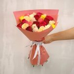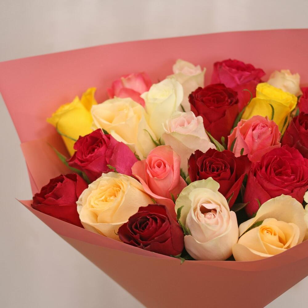 Букет из 25 роз микс 35-40 см (Кения) в упаковке