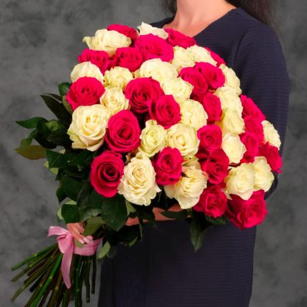 Букет из 45 белых и розовых роз