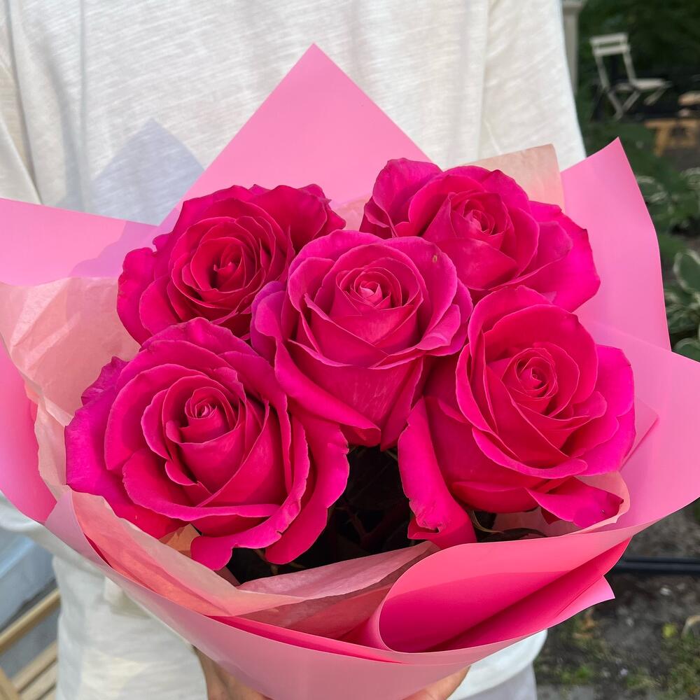 Букет из 5 розовых французских роз