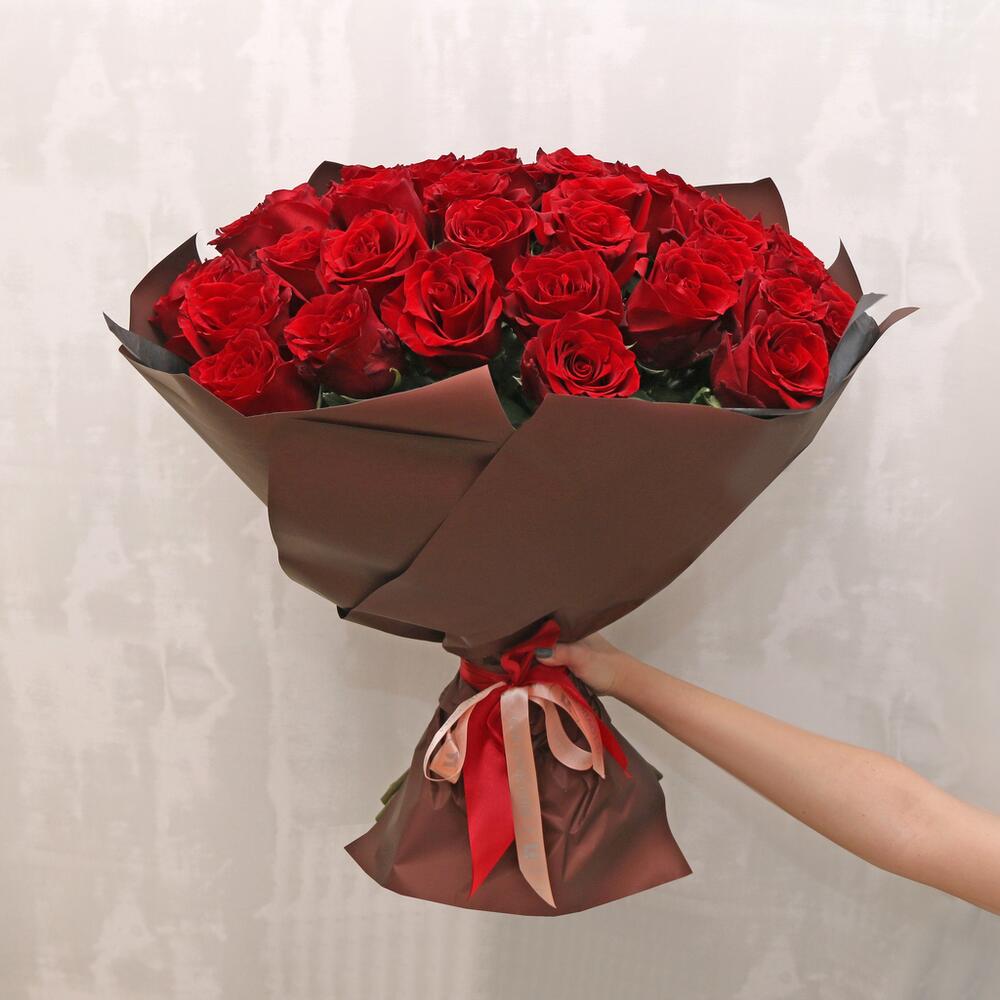 Букет из 51 красных роз premium 60-70 см (Эквадор) в стильной упаковке