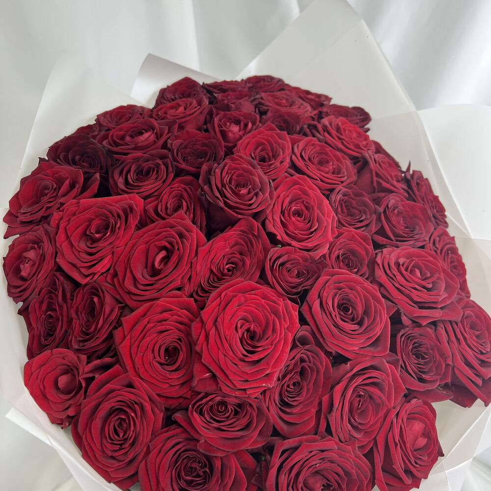 Роза – 51 шт.Упаковка – 3 шт.Атласная лента – 1 шт.