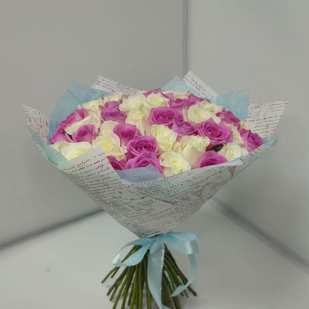 роза кения микс 40 см – 51 шт.Дизайнерская упаковка – 1 шт.