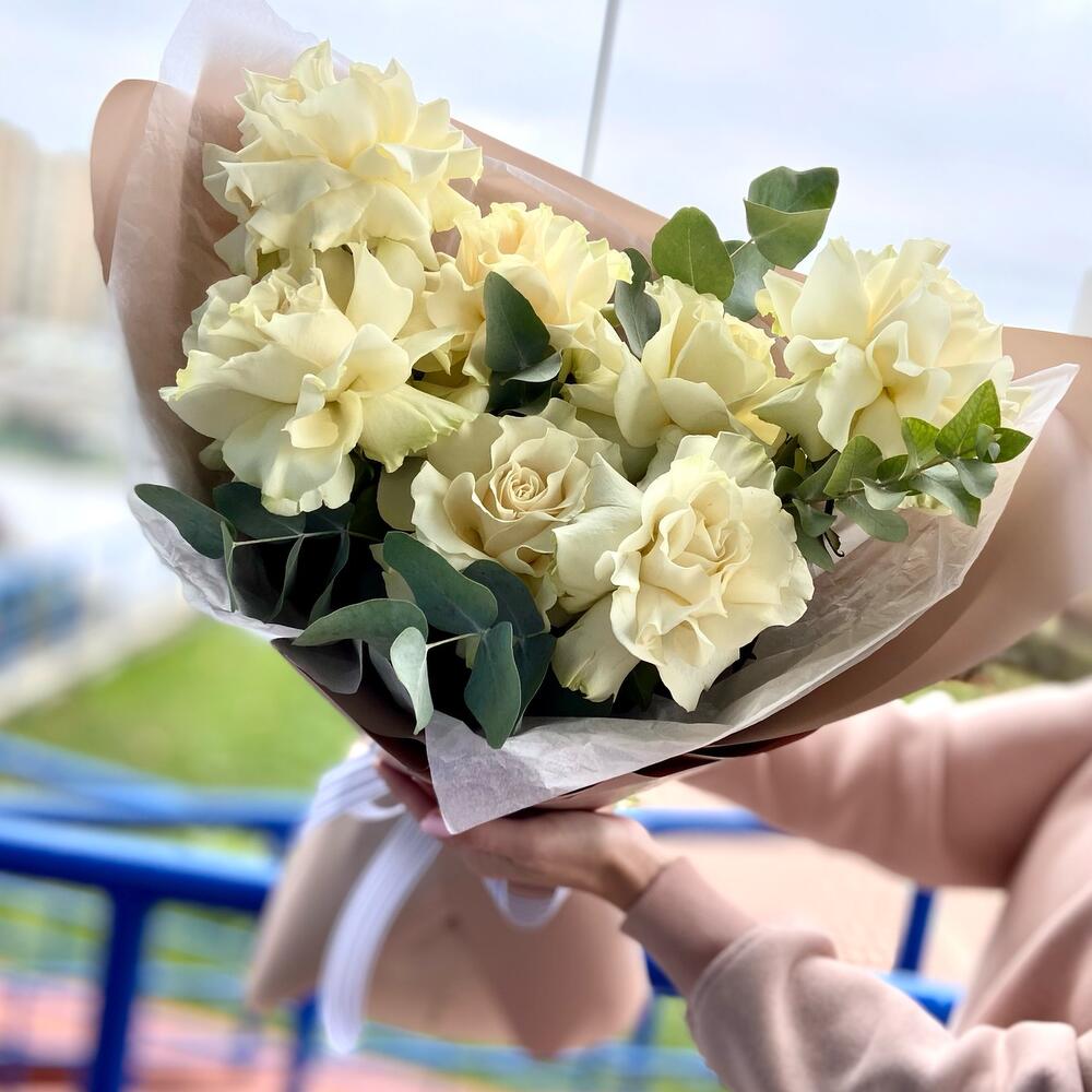 Эвкалипт – 5 шт. Упаковка дизайнерская – 1 шт. Французская роза – 7 шт.