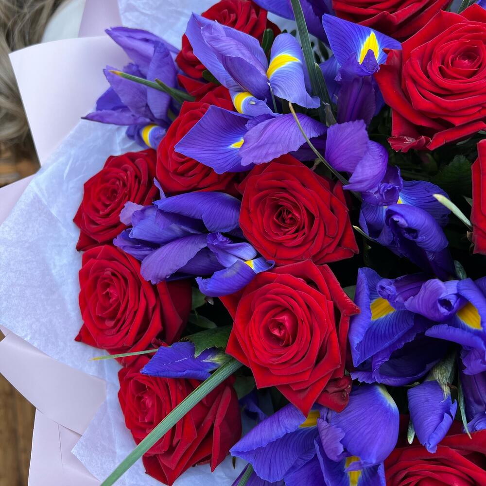 Букет из Красных Роз и Ириса 60см