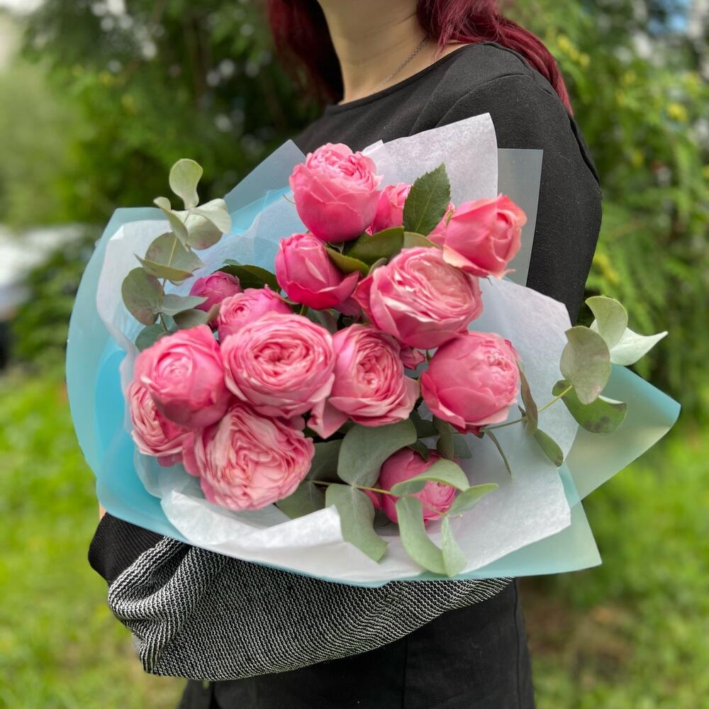 Букет из кустовой пион розы с эвкалиптом (СБ 001)