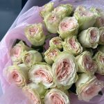 Букет из кустовой пионовидной розы Джульетта и эвкалипт