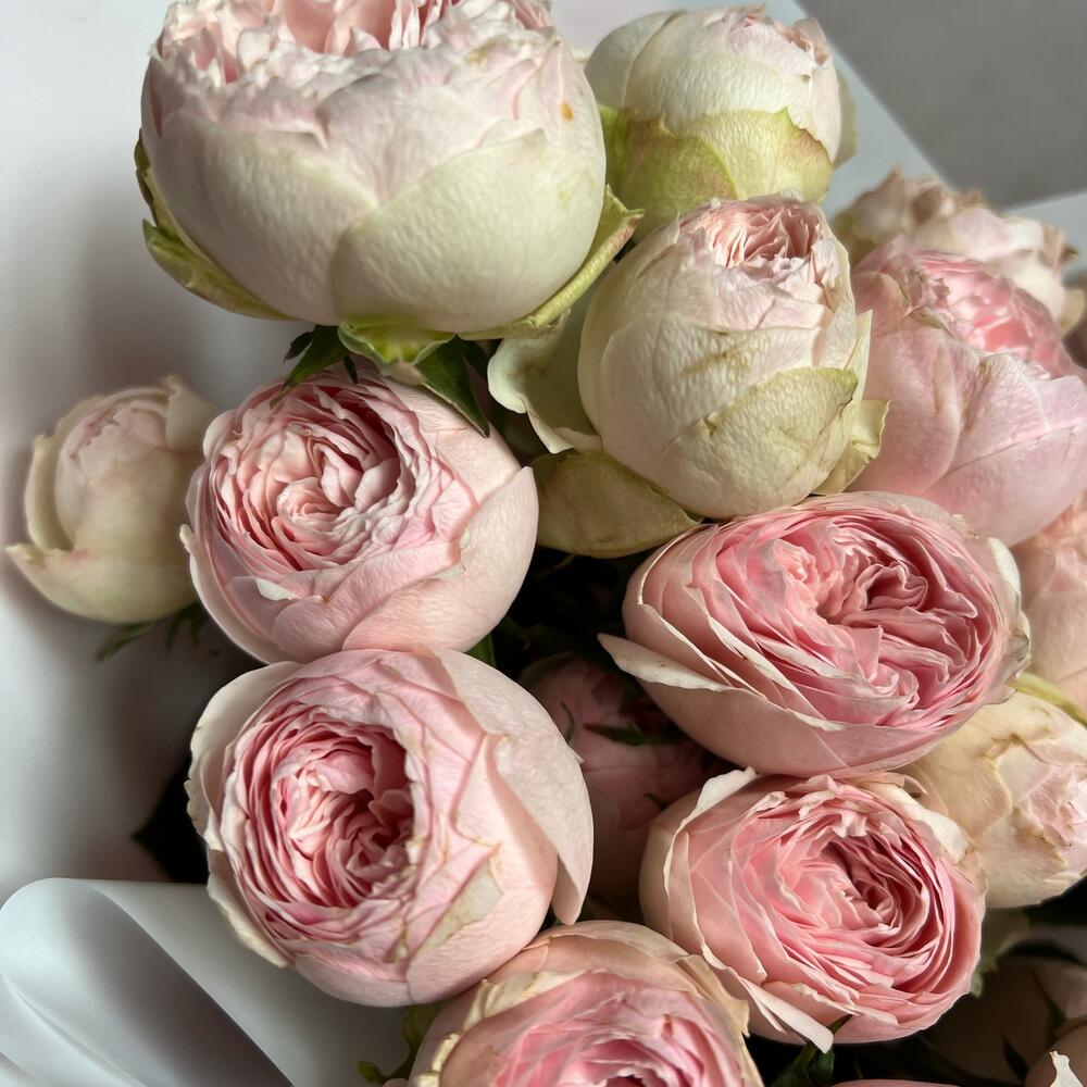 Атласная лента – 1 шт.декоративная упаковка – 1 шт.кустовая пионовидная роза менсфилд парк – 5 шт.