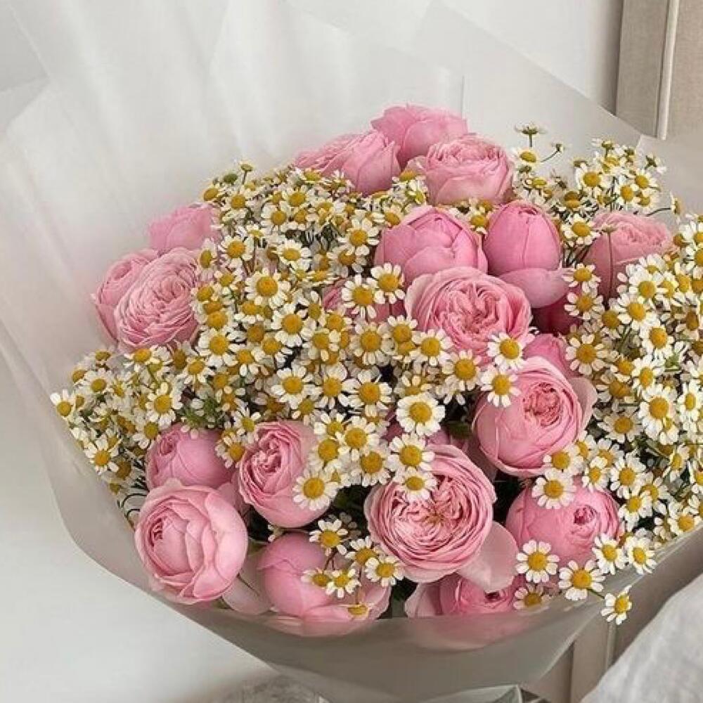Категории: Кустовые розы, Пионовидные розы, Розы, Ромашки