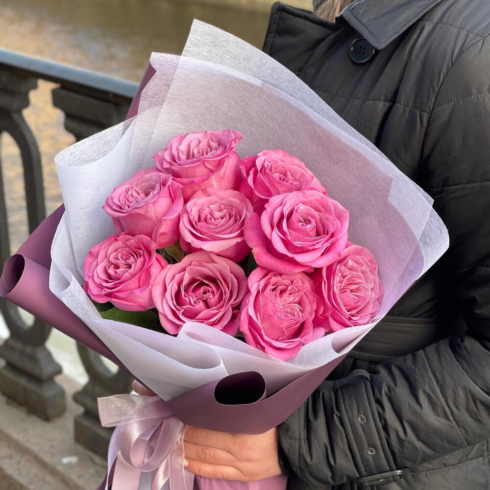 Лента – 2 шт.Роза одноголовая – 9 шт.Упаковка дизайнерская – 2 шт.