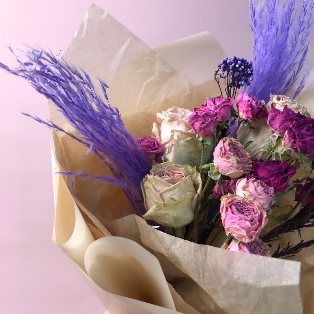 Букет-комплимент из засушенных цветов и сухоцветов