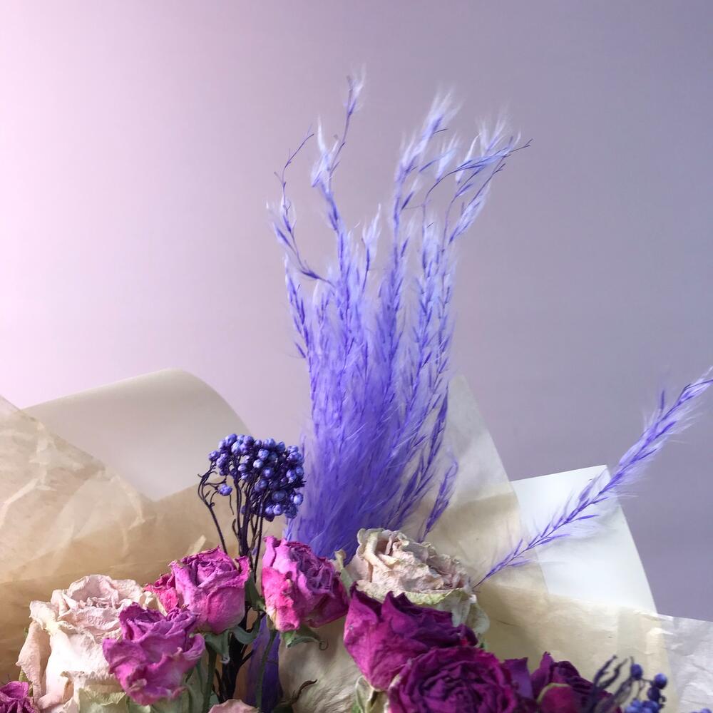 Ковыль – 2 шт.озотамнус стабилизированный – 2 шт.роза кустовая засушенная – 2 шт.роза засушенная – 3 шт.Оформление – 1 шт.