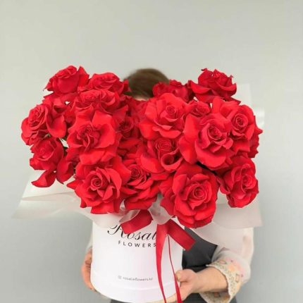 25 красных роз в коробке