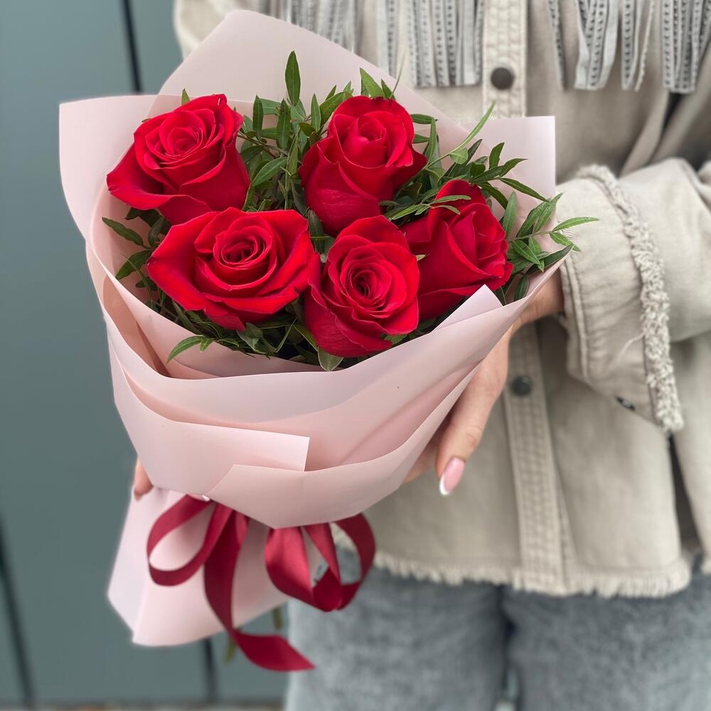 Метки: 5 роз, Красные розы, от 1000 до 2000 руб, Роза Роза 40 см
