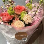 Роза пионовидная – 2 шт.Диантус – 2 шт.Роза кустовая пионовидная – 1 шт.Лизиантус – 1 шт.Маттиола – 2 шт.Матрикария – 1 шт.Упаковка дизайнерская – 1 шт.
