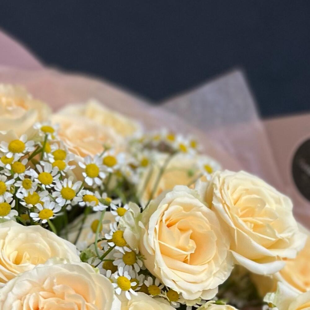 Категории: Кустовые розы, Розы, Ромашки