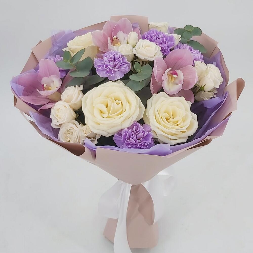 Букет с орхидеями, розами и лунными гвоздиками Марсель