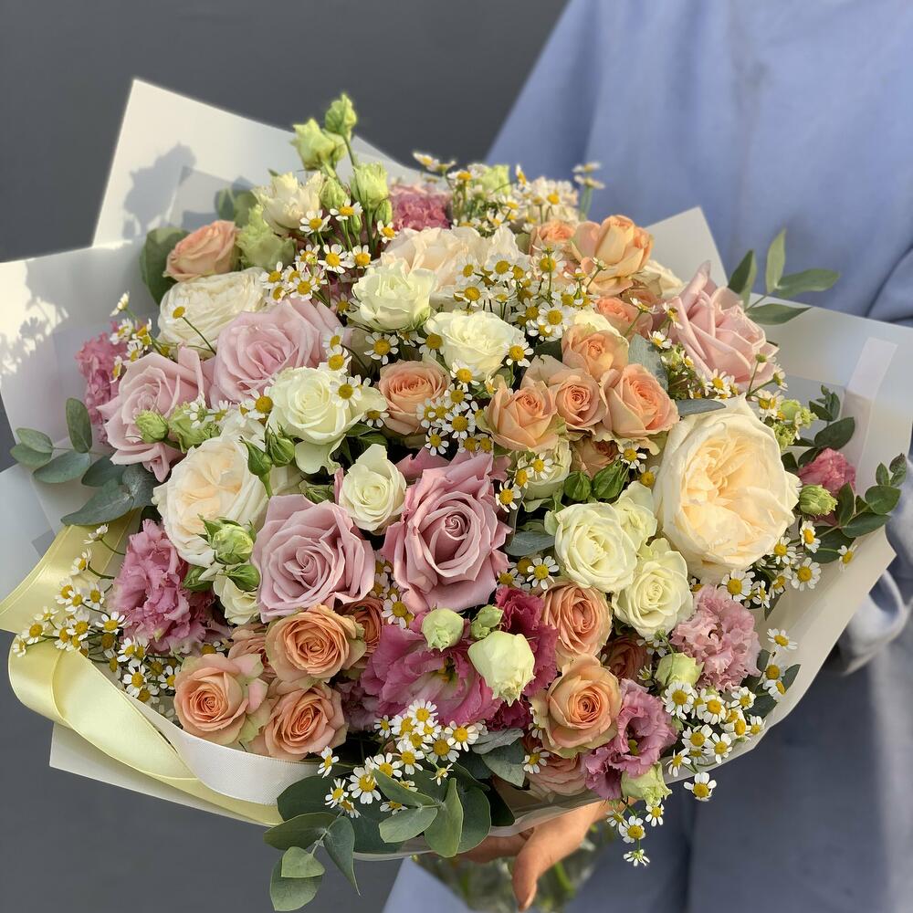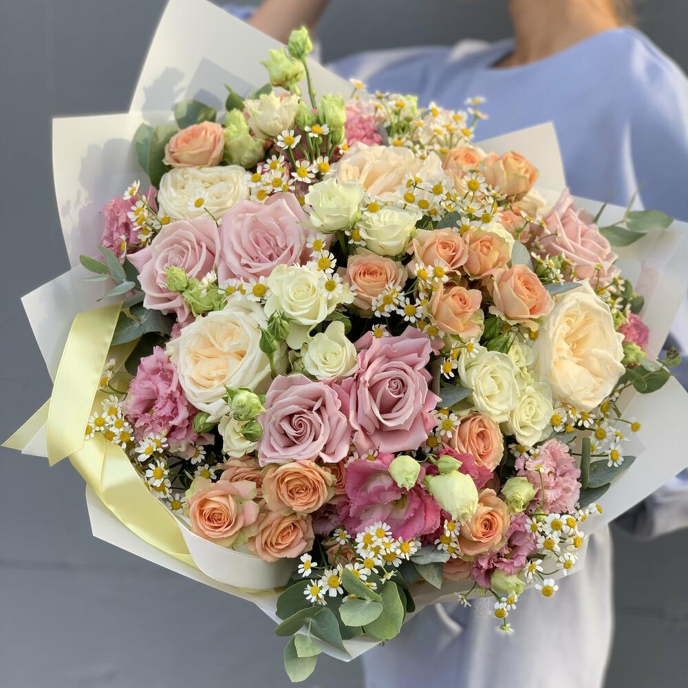Категорий: Кустовые розы, Лизиантусы, Пионовидные розы, Розы, Ромашки