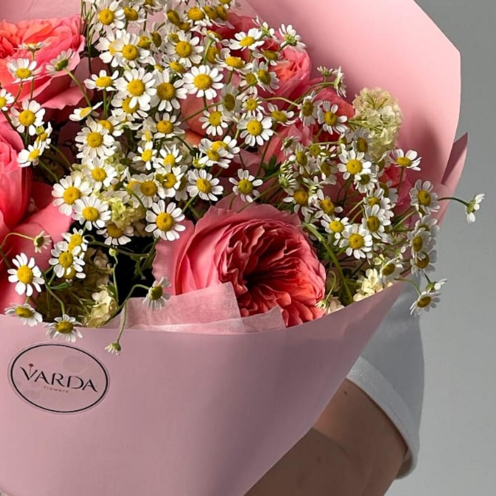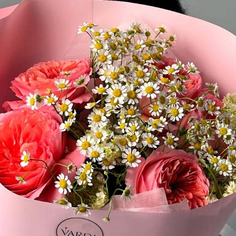 Альстромерии, Кустовые розы, Лизиантусы, Пионовидные розы, Розы, Ромашки