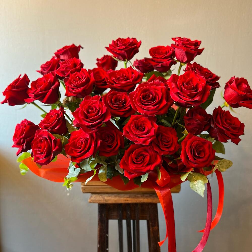 Роскошная композиция из красных роз , эффектный дизайн и необычная форма, которая запомнится надолго. Удачное решение для тех, кто не любит цветы в вазе. Композиция может быть собран в любом кашпо, ящике, коробке , суть и форма не поменяется.Мы подпишем за вас открытку … Показать ещёс самыми важными словами и вовремя доставим адресату.