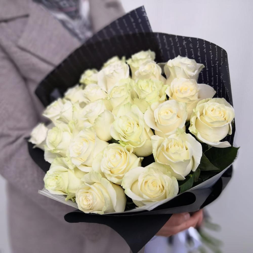 Роза Мондиаль – 25 шт.Упаковка пленка матовая – 2 шт.Лента – 1 шт.