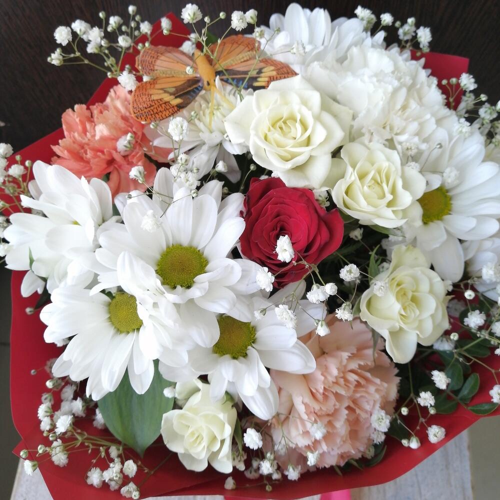 Категорий: Гвоздики, Гипсофила, Кустовые розы, Розы, Хризантемы