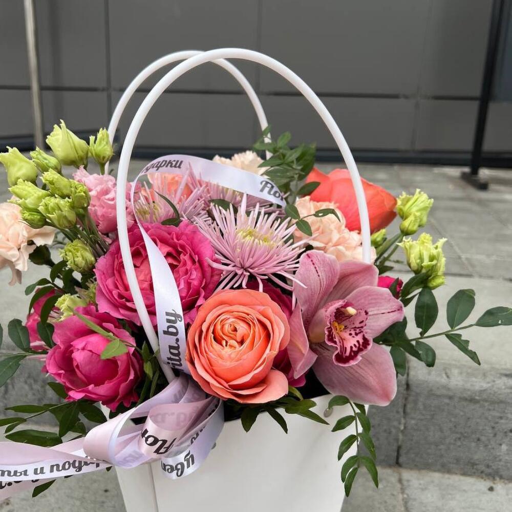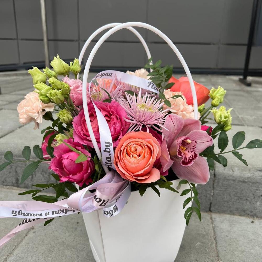Гвоздики, Лизиантусы, Розы, Тюльпаны