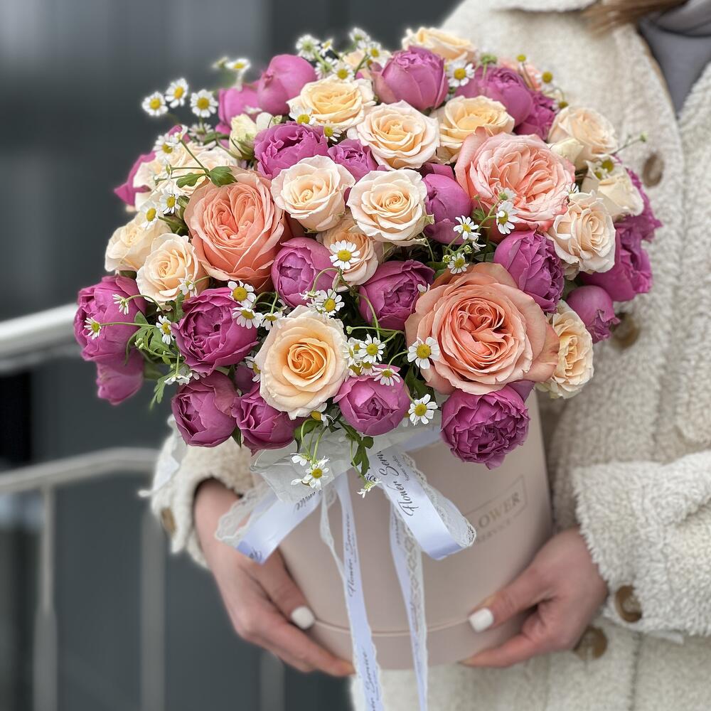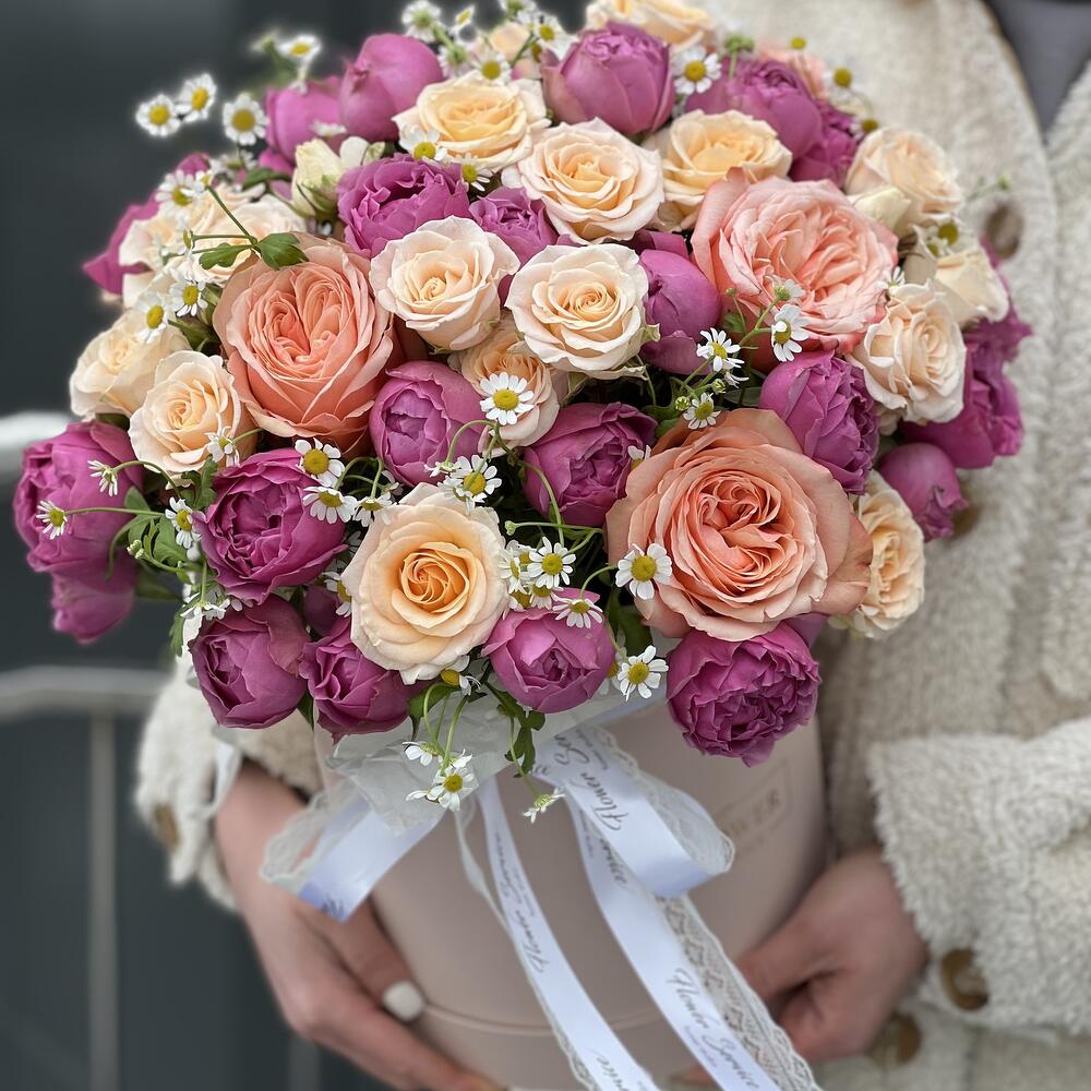“В твоих глазах”: нежная шляпная коробка с французскими розами