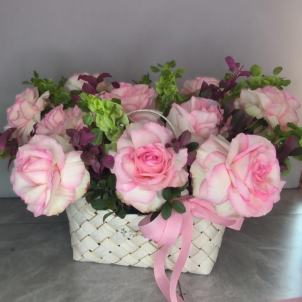 Гвоздики, Кустовые розы, Лизиантусы, Пионовидные розы, Розы