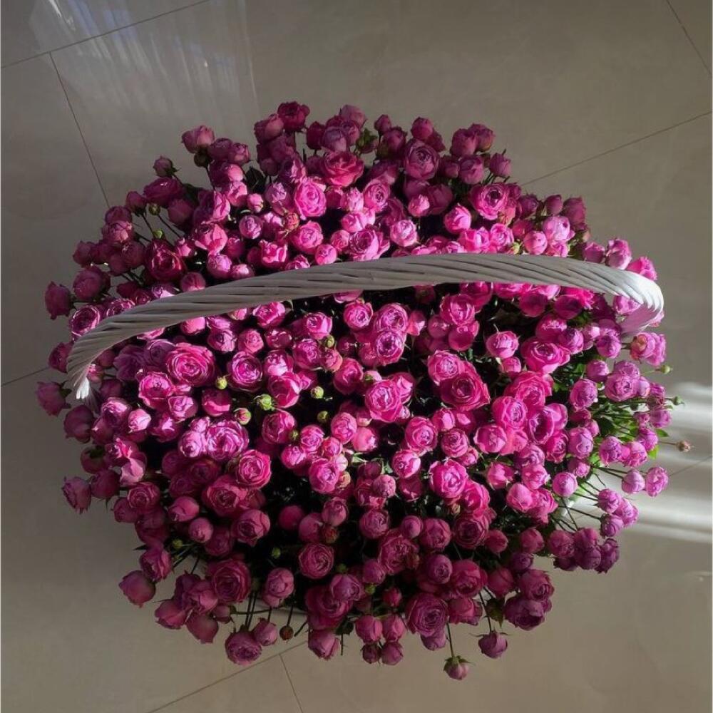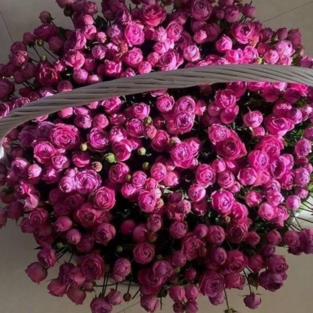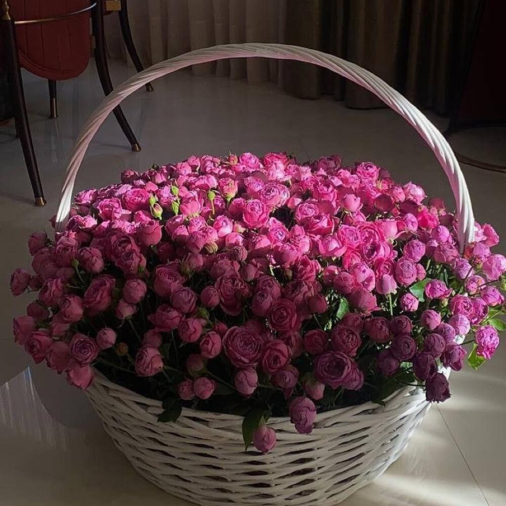 Корзина плетеная – 1 шт. Пионовидная кустовая роза – 151 шт.
