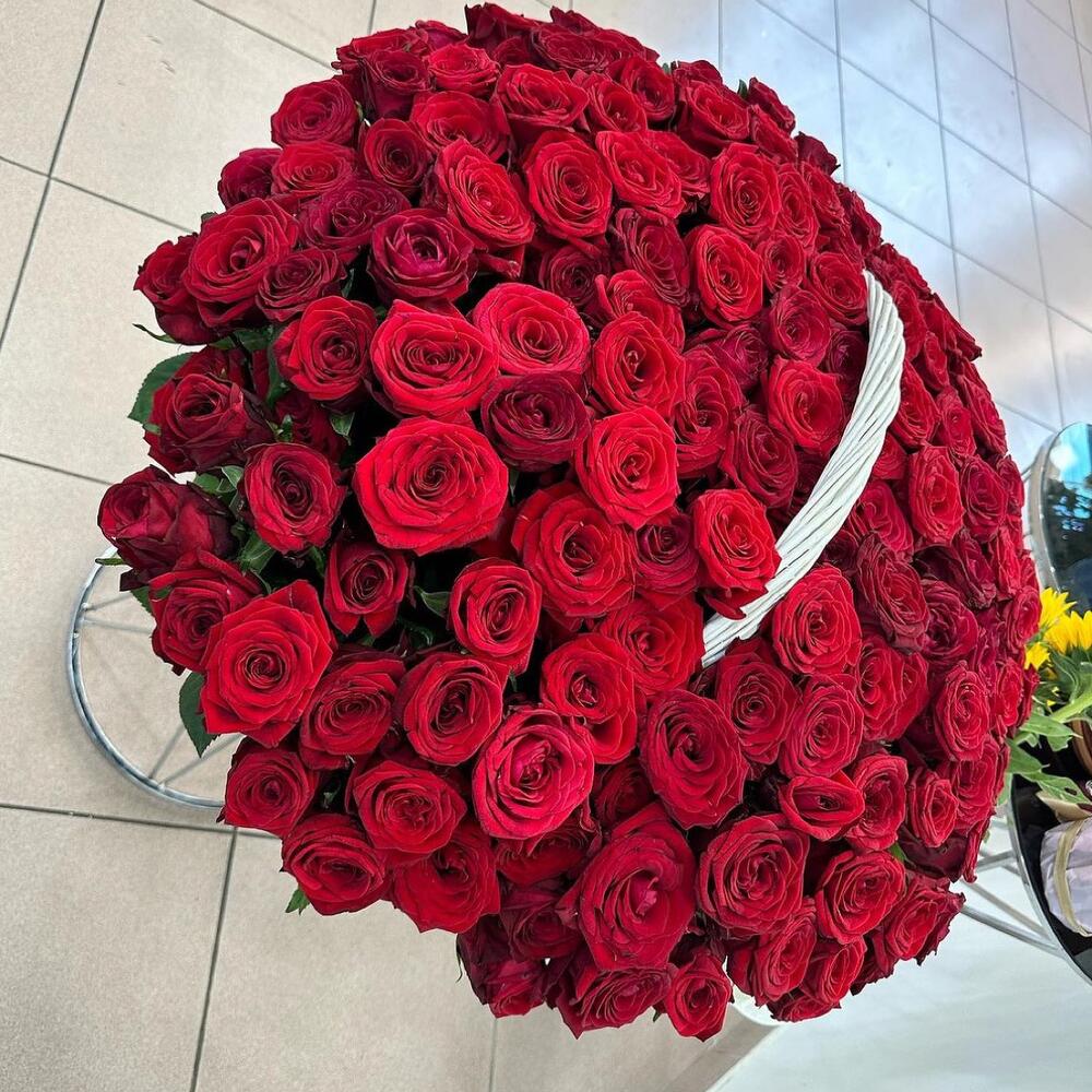 Корзина плетеная – 1 шт. розы голландские – 151 шт.