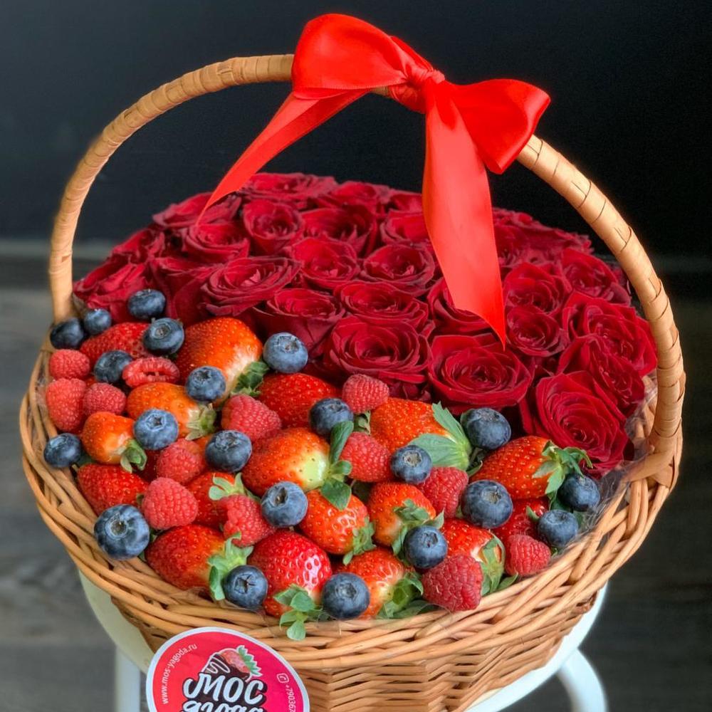 Корзина с цветами и ягодами