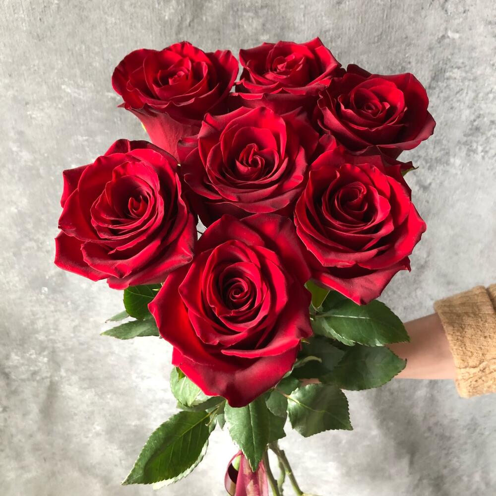 роза эксплорер 50 см эквадор – 7 шт.Лента – 1 шт.