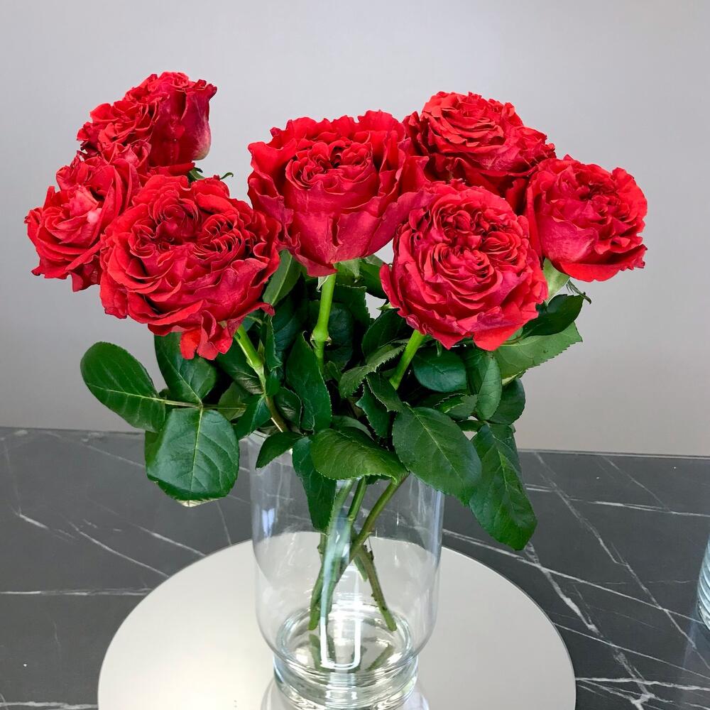 Красная пионовидная роза